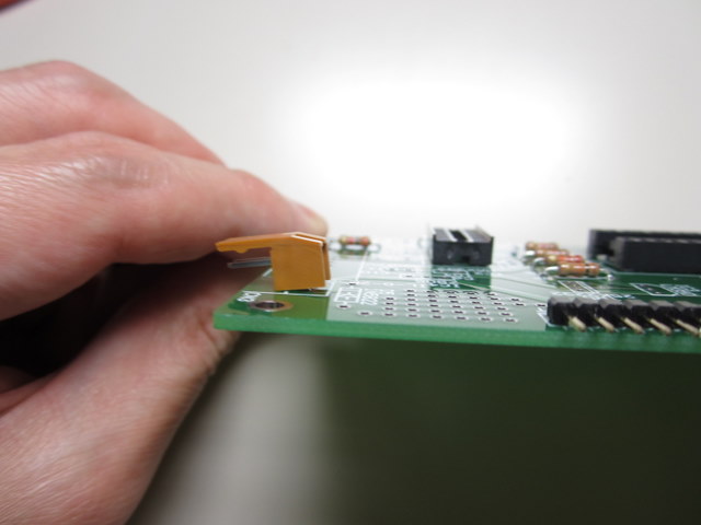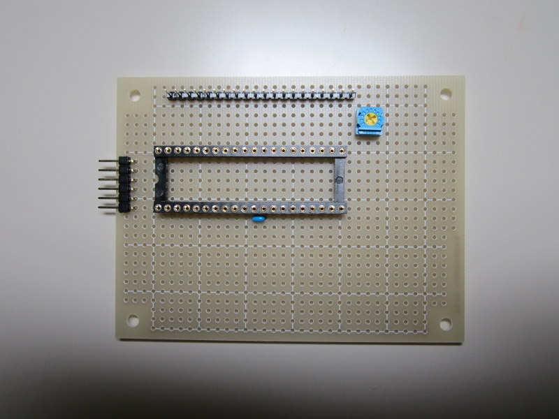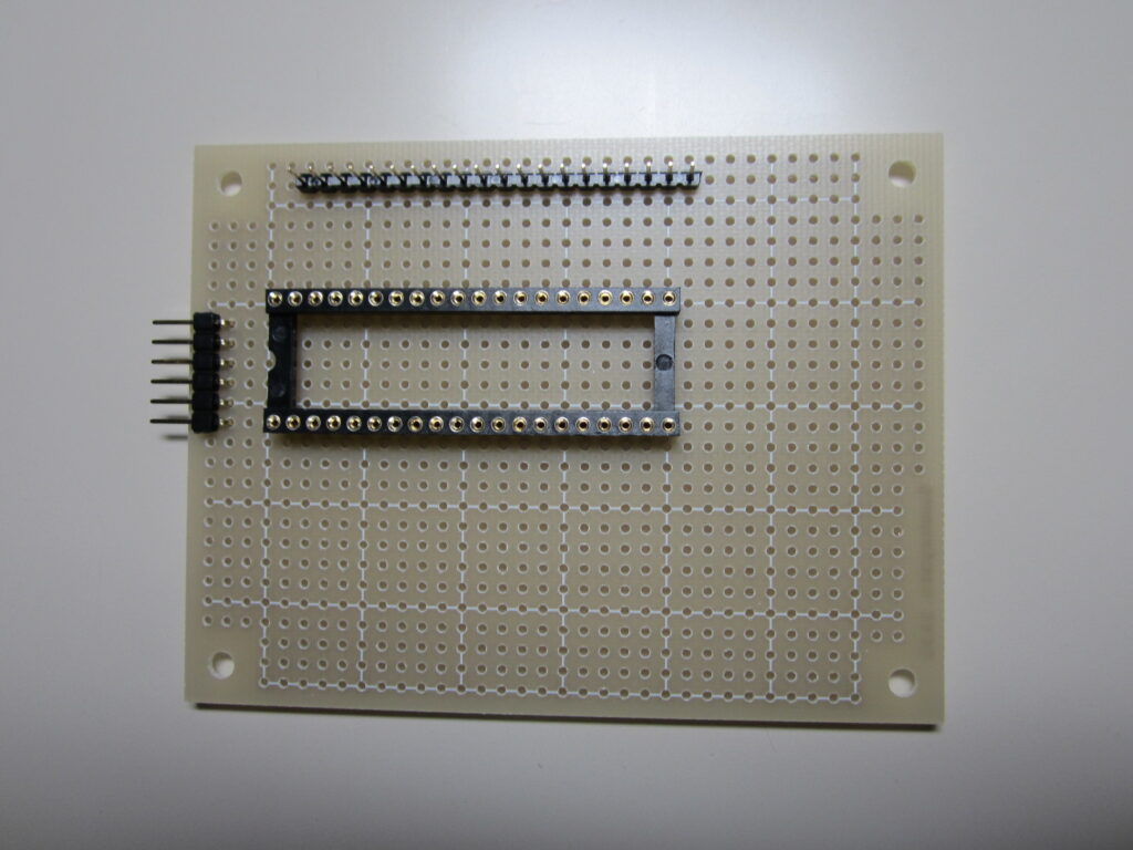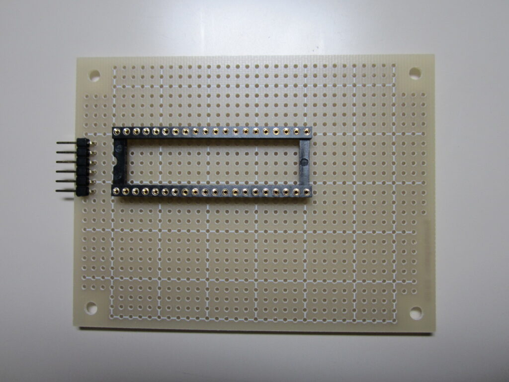 対角の2本だけをはんだ付けして固定するだけにしておけば、浮いたり傾いたりした場合に、半田ごてを当てて、ICソケットを押さえるようすれば、簡単に修正できます。